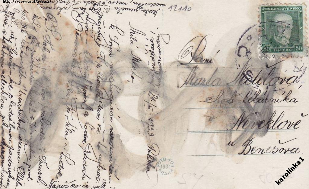 POHLEDNICE MALÝ FORMÁT , ZACHOVALÁ,lom na pr.d.rohu,PROŠLÁ POŠTOU, VIZ OBRÁZEK =