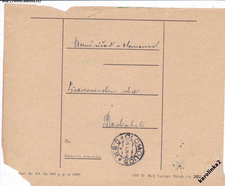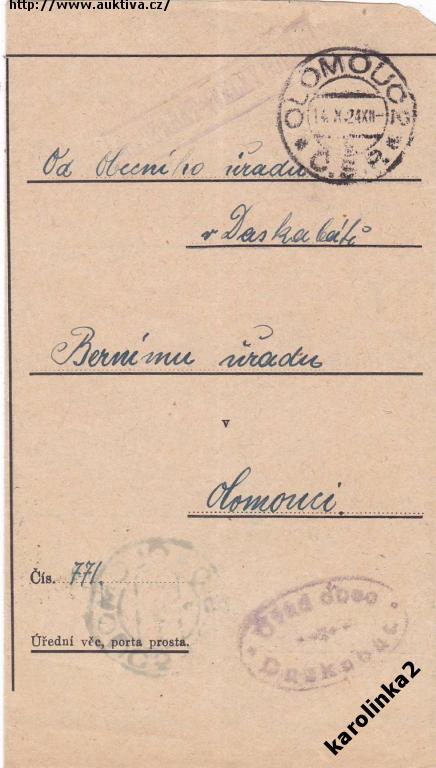 POŠTOVNA DASKABÁT=VELKÝ ÚJEZD= OLOMOUC=rok1924*c8401