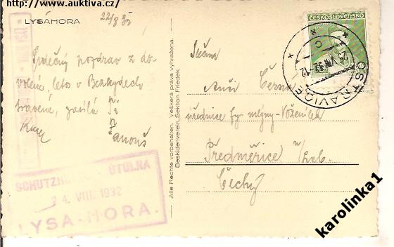 POŠTOVNA LYSÁ HORA / FRÝDLANT/rok1932*kro472