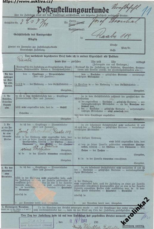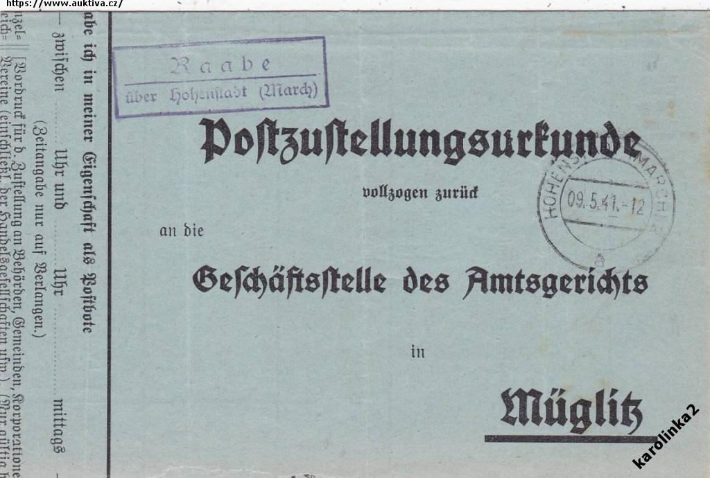 POŠTOVNA RAABE=HRABOVÁ+ZÁBŘEH+MÜGLITZ=SUDETY=rok1941*c10235