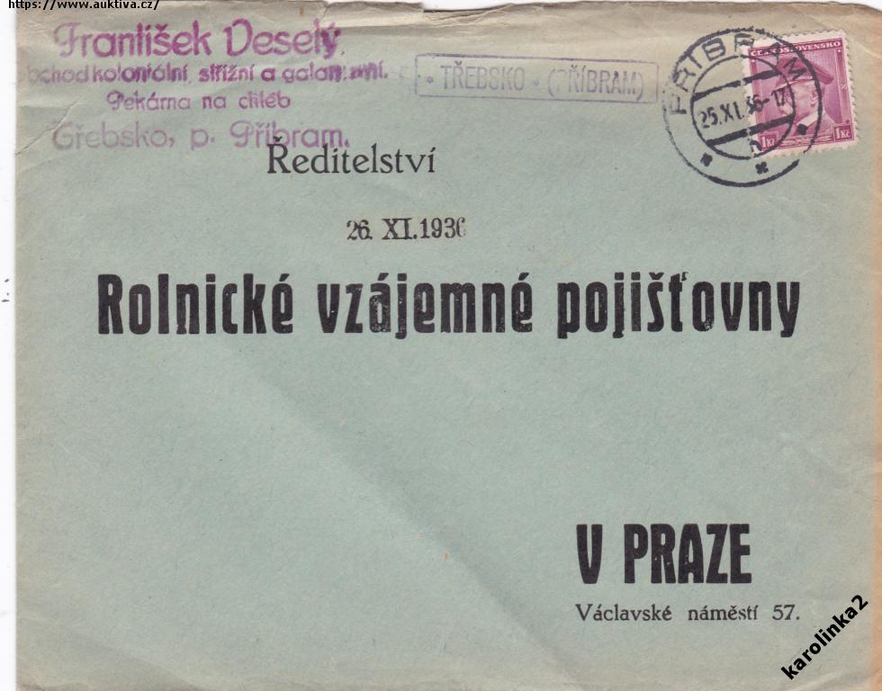 POŠTOVNA TŘEBSKO= PŘÍBRAM=rok1936?*c12366