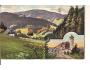 POHLEDNICE MALÝ FORMÁT ,ZACHOVALÁ,PROŠLÁ POŠTOU,VZADU SE ZNÁMKOU + RAZÍTKEM POŠTOVNY(viz obdelníkové razítko)