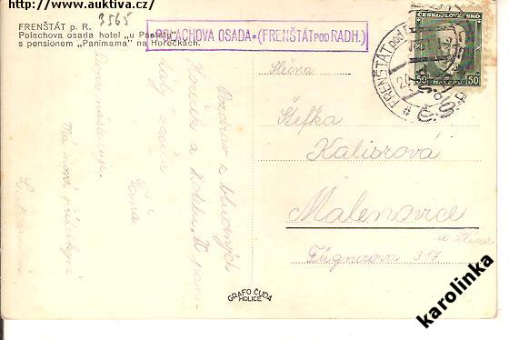 POŠTOVNA POLACHOVA OSADA / FRENŠTÁT /rok1936?*AA3565