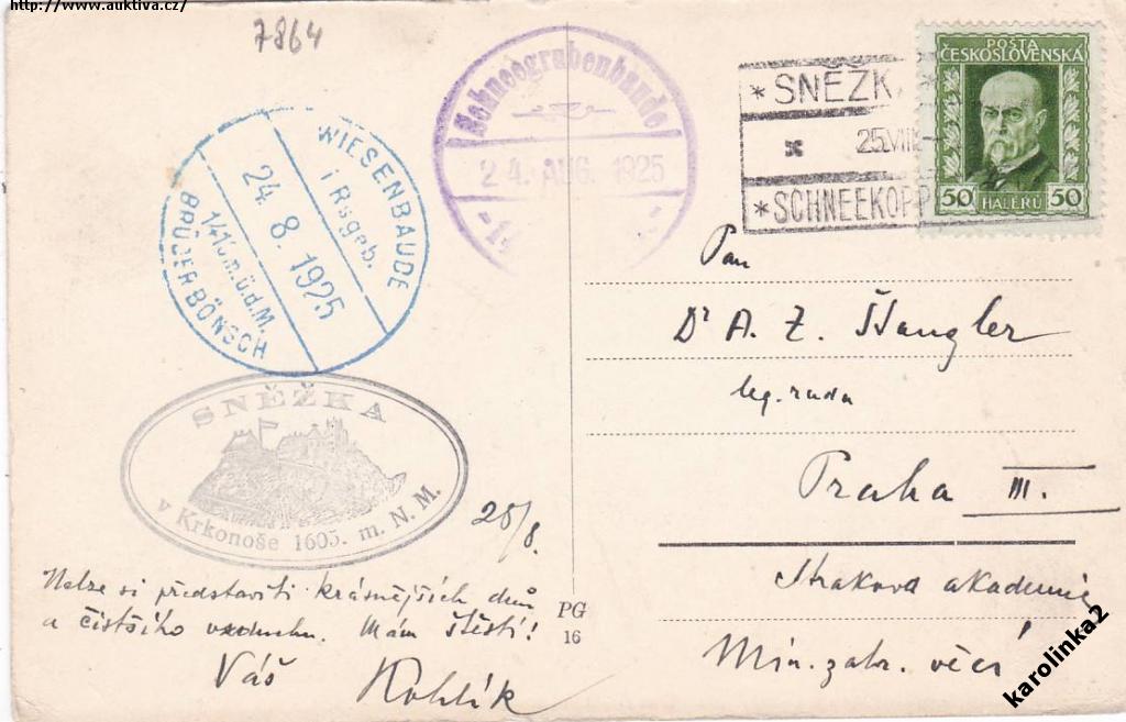 POŠTOVNA=SNĚŽKA=PEC=RAZÍTKO PŘES ZNÁMKU=VZÁCNÉ=rok1925*c7864