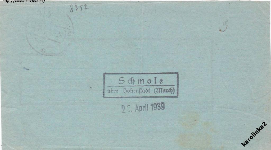 POŠTOVNA SUDETY=SCHMOLE= ZABŘEH+UNIČOV/rok1939*c8352