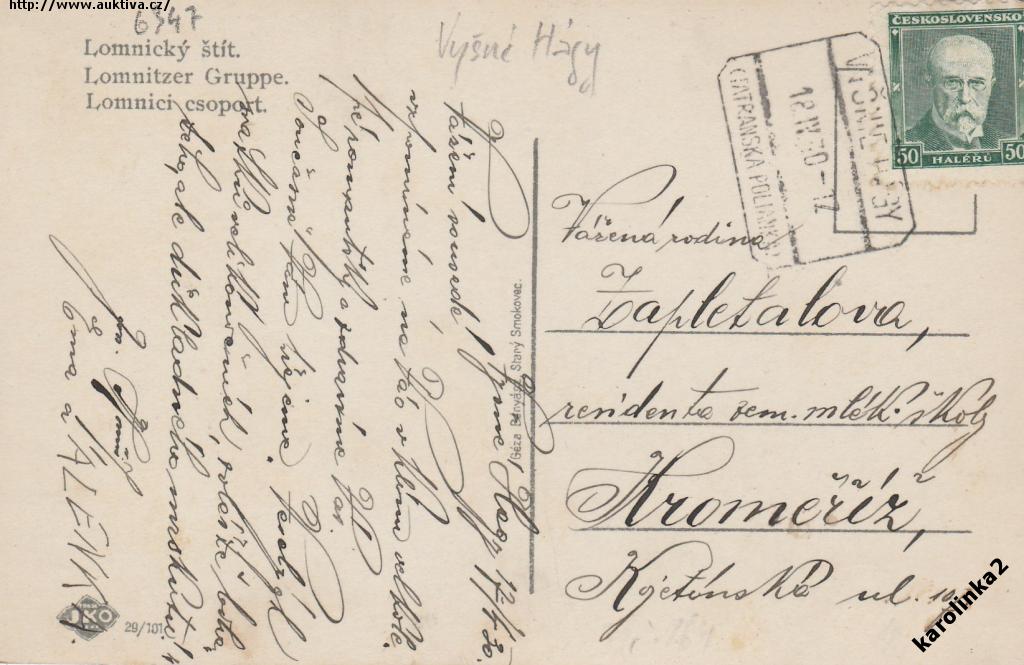 POŠTOVNA VYŠNE HAGY-T.POLIANKA/rok1930*c6347