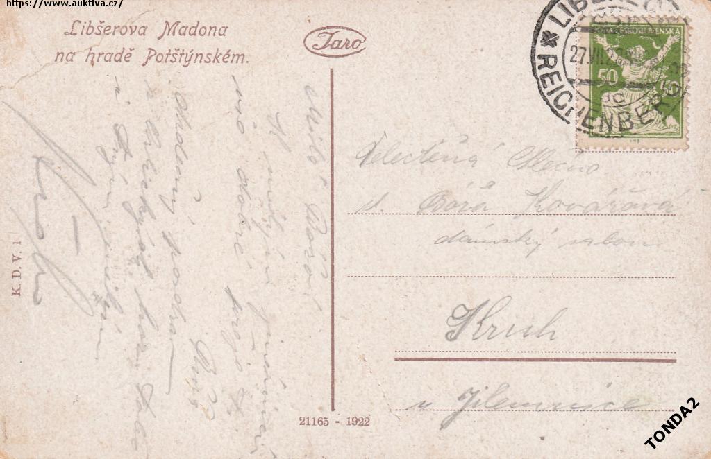 POTŠTEJN LIBŠEROVA MADONA 1922 JARO NAKL. K. DVOŘÁK °HB21