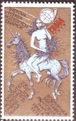 Praga 1978 Výstava známek, žena s koněm, zlatá modrá, propa