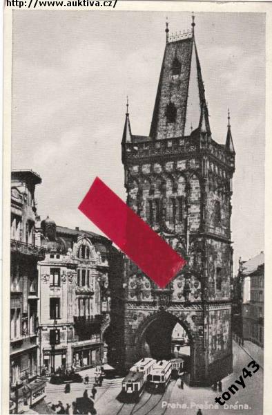 PRAHA - Prašná brána - tramvaje - odeslán 1936 - razítko