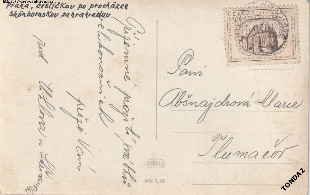 PRAHA CEST. SCHÖNBORSKOU ZAHRADOU ORBIS Kčs 0.50 °PB871