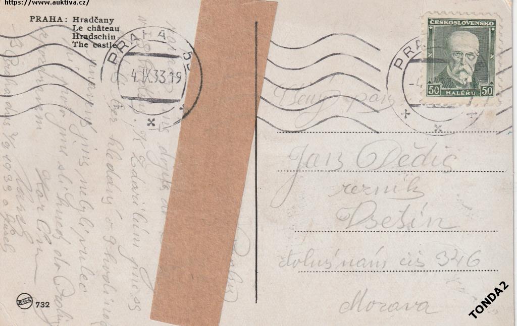 PRAHA HRADČANY 1933 BEZ NAKL. °PB98