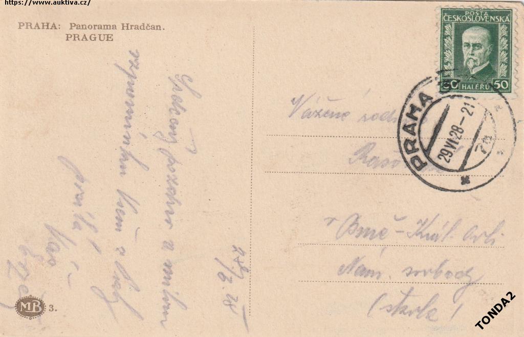PRAHA PANORAMA HRADČAN r. 1928 NAKL. M.B.. °PB82