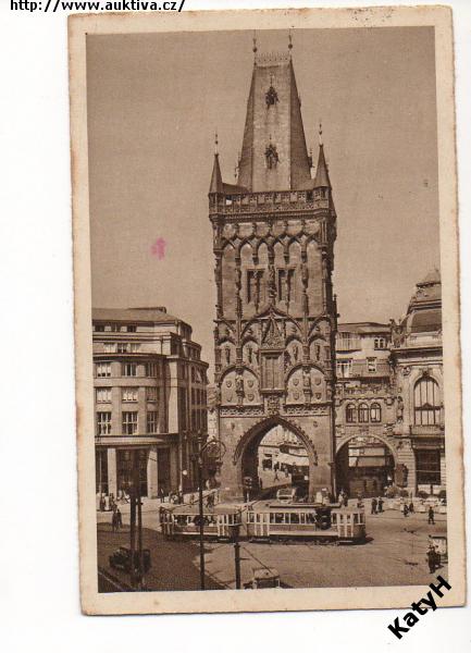 Praha Prašná brána trmvaje auta r.1939,prošlá E2/80