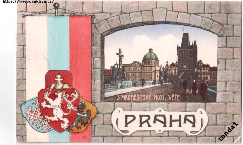 PRAHA STAROMĚSTSKÉ MOST. VĚŽE ZNAK VLAJKA r.1919 °53711G