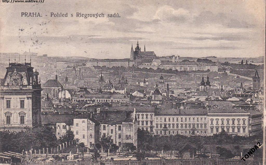 PRAHA Z RIEGROVÝCH SADŮ r.1923 NAKL. V.K.K.V. RAZ. POŠTOVNY PŘÍSNOTICE °807X