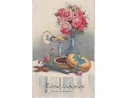 přání - květiny, váza - vlaková pošta Brno-Jihlava 511