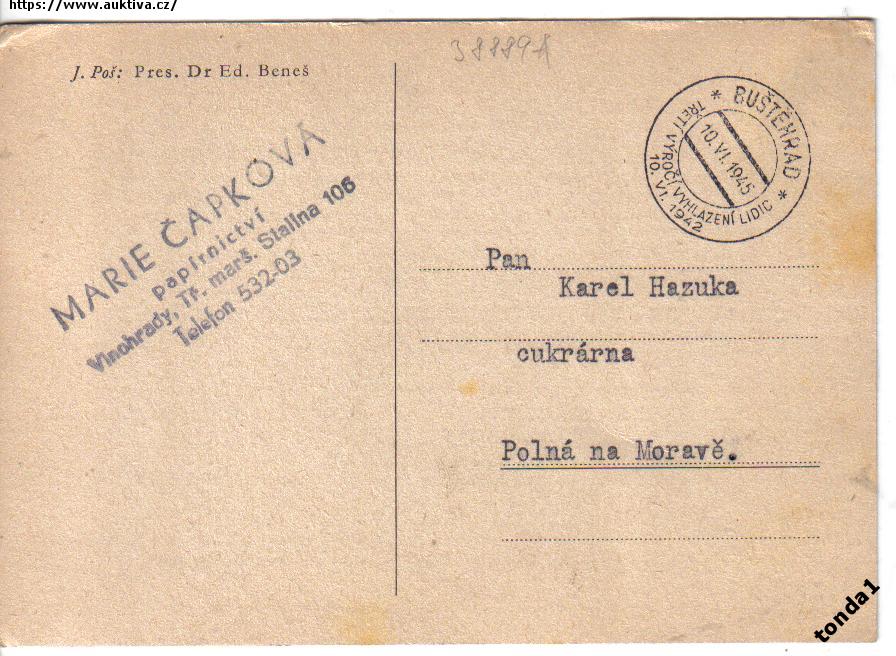 PREZIDENT E. BENEŠ RAZ. VYHLAZENÍ LIDIC BEZ NAKL.°38889Å