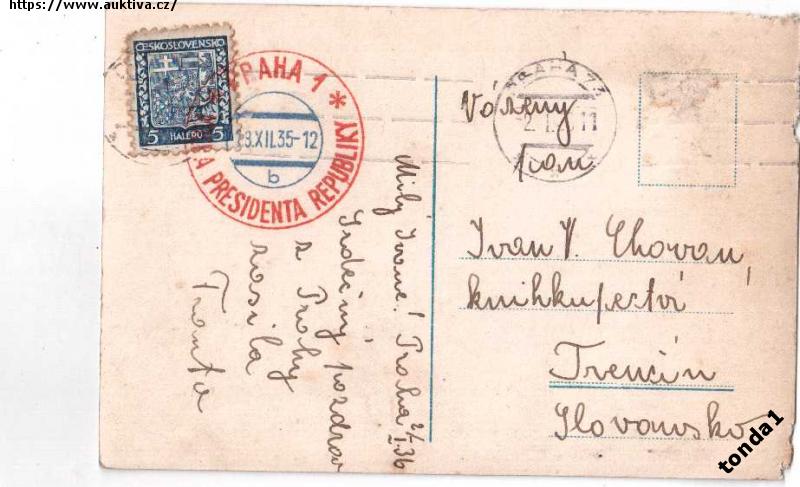 Popis předmětu: PROŠLÁ - RAZ. * PRAHA 1 18.XII.35 VOLBA PRESIDENTA REPUBLIKY *
