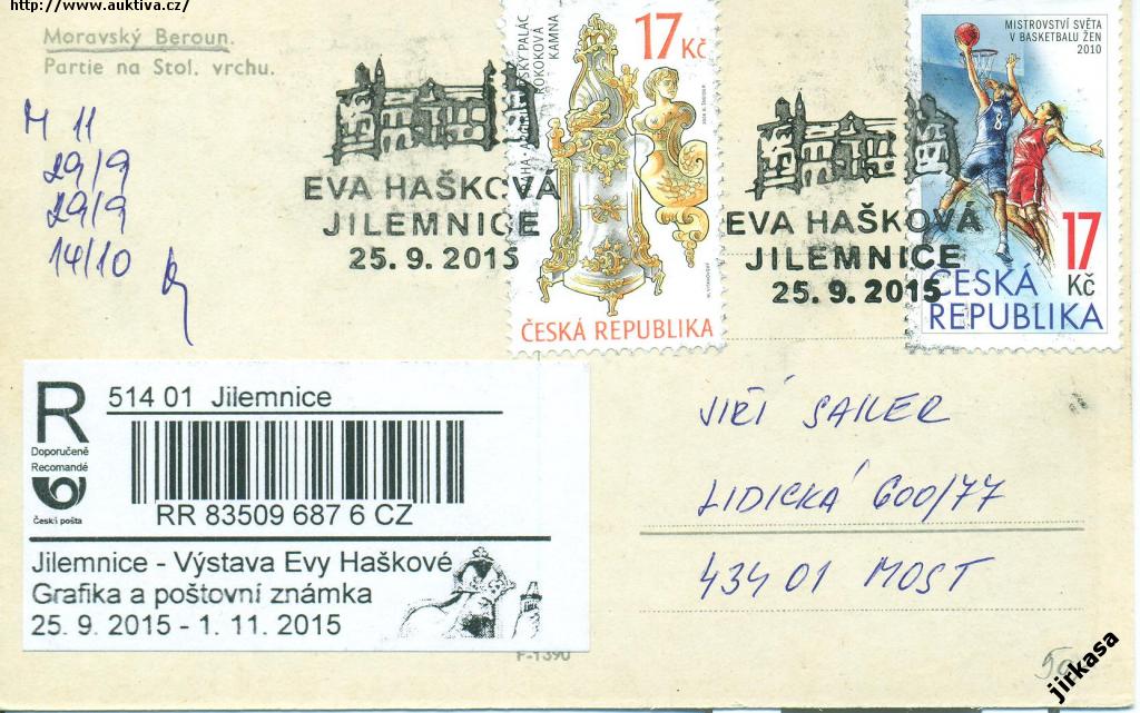 Příl razítko R nálepka Jilemnice pohled Moravský Beroun