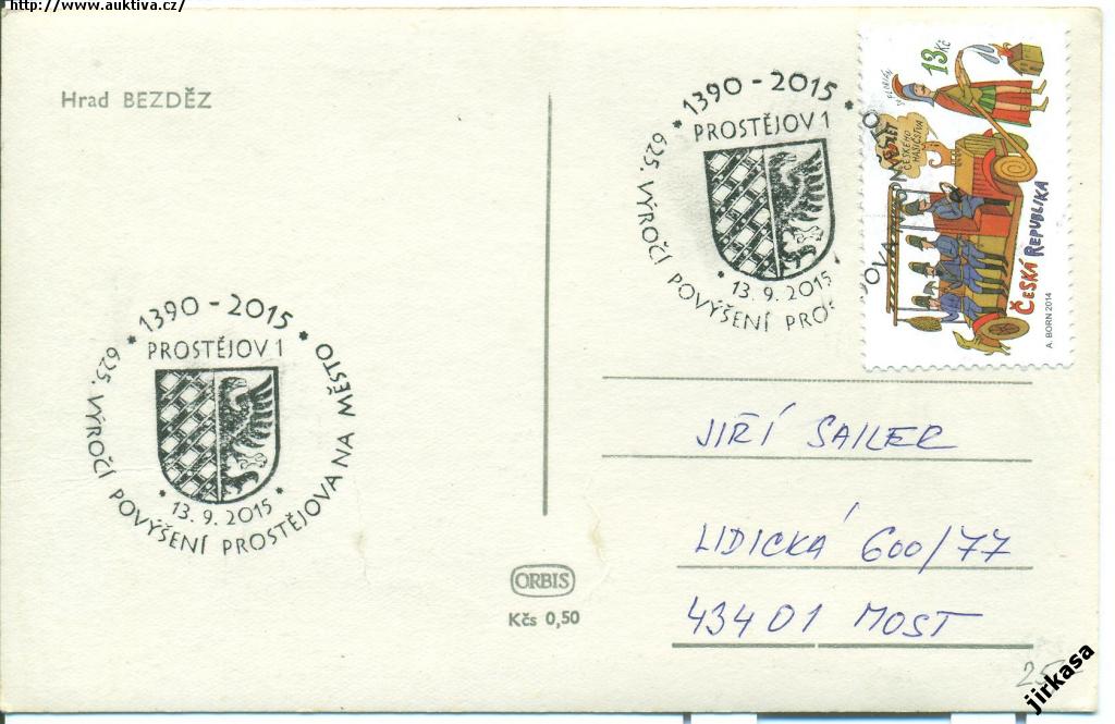 Příležitostné razítko Prostějov pohled Bezděz