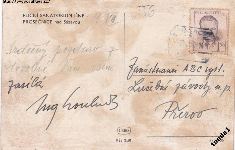 PROSEČNICE N/S SANATORIUM ORBIS Kčs 2.50 °54040B