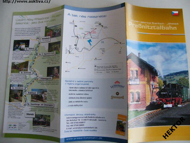 Prospekt "Preβnitztalbahn – Muzejní železnice Steinbach – Jöhstadt – úzkokolejka" – česky. Nový nepoužitý. Cena je za 1 kus.
