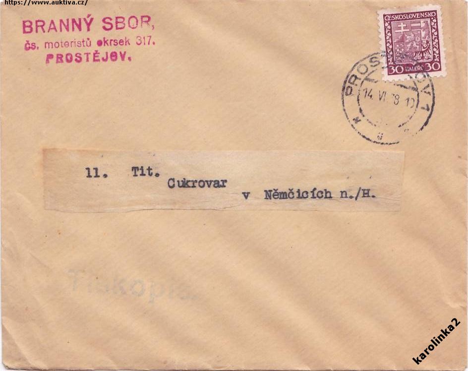 PROSTĚJOV RAZÍTKO=CUKROVAR NĚMČICE=rok1938*c14580