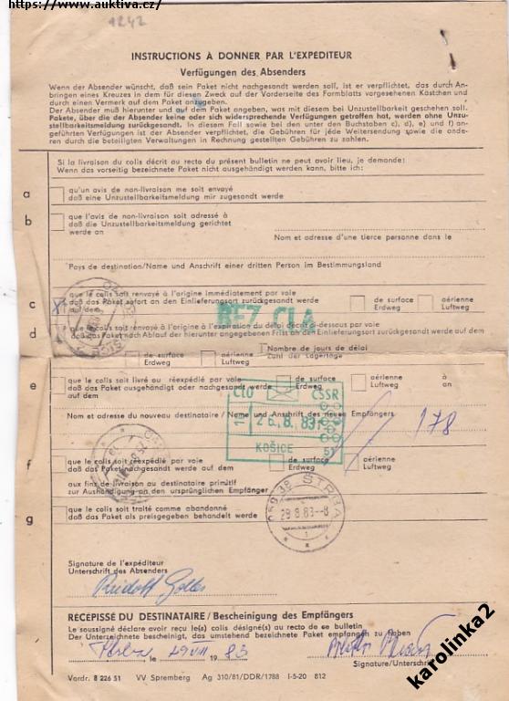 PRŮVODKA NĚMECKO DDR=DOPLATIT POPRAD=rok1983*P1242