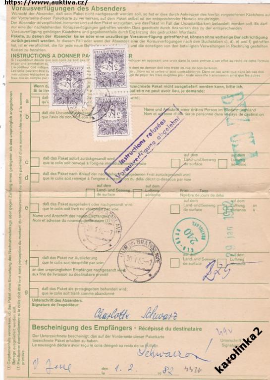 PRŮVODKA NĚMECKO=DOPLATIT JUR BRATISLAVA=rok1982*P1244
