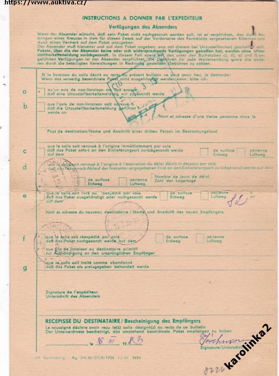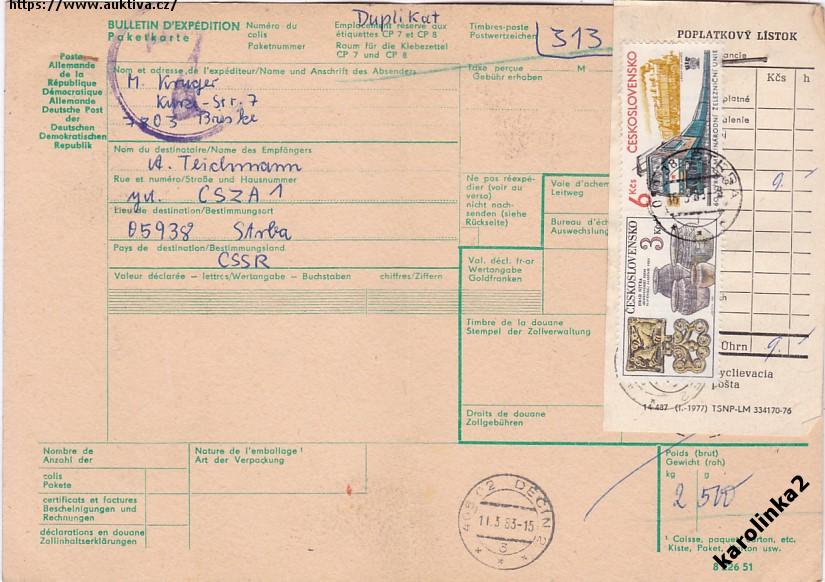 PRŮVODKA NĚMECKO=DOPLATIT ŠTRBA=rok1983*P1228