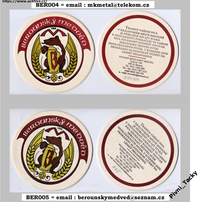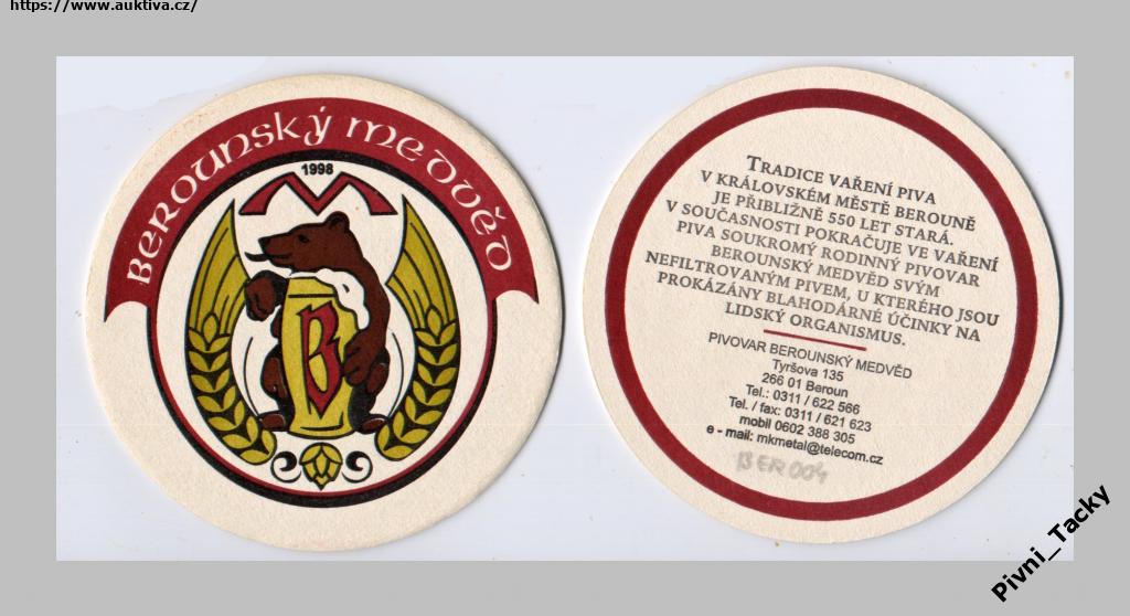 PTMD 1ks tácek BER004 !!! pivovar BEROUNSKÝ MEDVĚD * ČTI