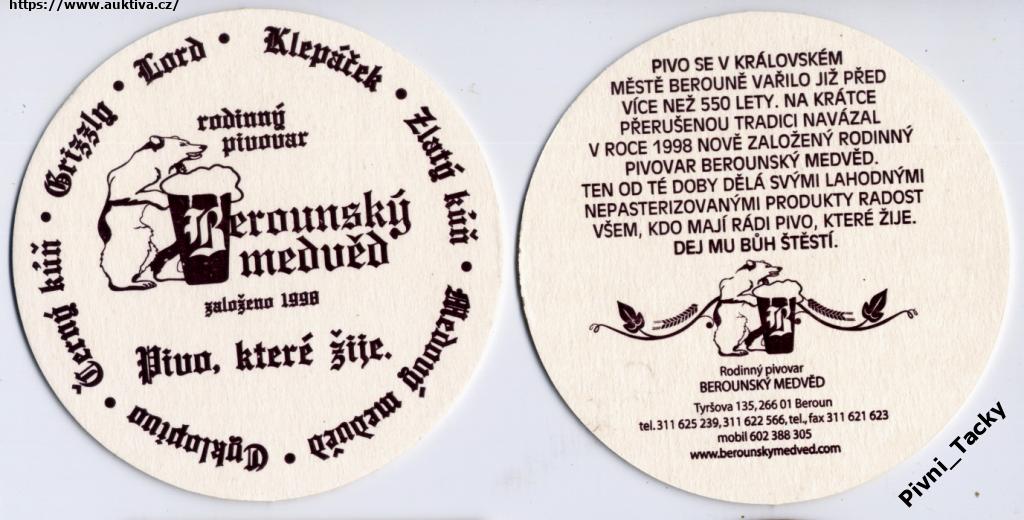 PTMD 1ks tácek BER009 !!! pivovar BEROUNSKÝ MEDVĚD * ČTI