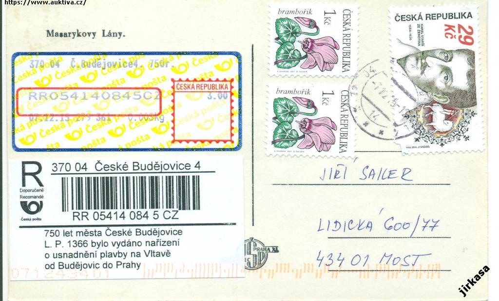 R nálepka Apost Budějovice 4 750 let pohled Masarykovy Lány