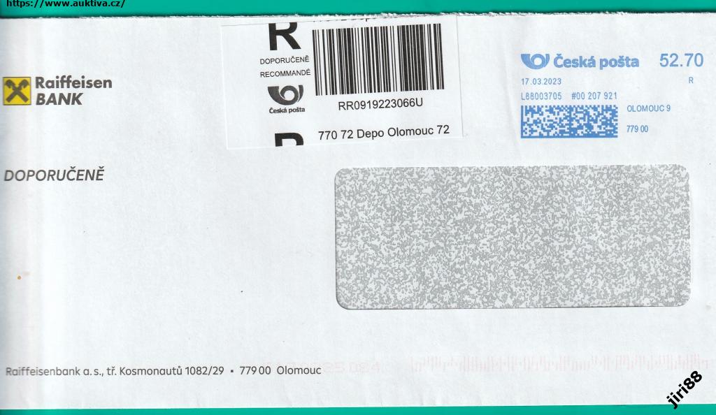 R nálepka s čárovým kódem na doporučeném dopisu s QR kódem Česká pošta Olomouc 9