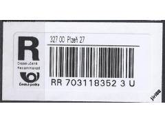 R nálepka s čárovým kódem - výstřižek