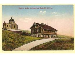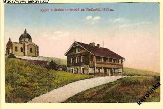 Popis předmětu:POHLEDNICE MALÝ FORMÁT,ZACHOVALÁ,NEPROŠLÁ POŠTOU,chata je zbourána a na JEJÍM MÍSTĚ JE NYNÍ TELEVIZNÍ PŘENOSOVÁ VĚŽ= U KAPLE NA RADHOŠTI ,KAPLE JEŠTĚ PŘED REKONSTRUKCÍ ! !
