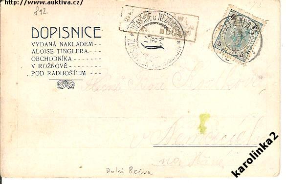 RADHOŠT HOSPODA +POŠTOVNA DOLNÍ BEČVA =ROŽNOV/rok1904*c=812
