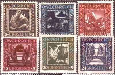 Rakousko 1926 Niebelungové, Michel č.488-93 *N, č.489 razítkovaná