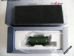 RARITA!!! Sběratelský Clubový model 2014 2osého vozu na vápno typu T – v Kmm, DR, epocha IV, karosérie stříkaná tmavou zelenou bez patiny, logo DR a popisy tištěny bílou na tmavě zeleném podkladu a bílou na černém podkladu na rámu, číslo vozu 30 50 943 0582-1 tištěno bílou na tmavě zeleném podkladu, vlevo dole černý obdélníček, přechodky lisované tmavě zelené, spodek vozu černý lepený, brzdová soustava součástí spodku vozu. Výrobcem Tillig TT Bahn v roce 2014, kat. č. 501400. Kinematika se šachtou pro krátké spřáhlo a kovová dvojkolí černěná. Po zakoupení je model uložen v originální krabičce a neježděn.