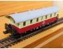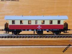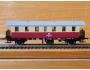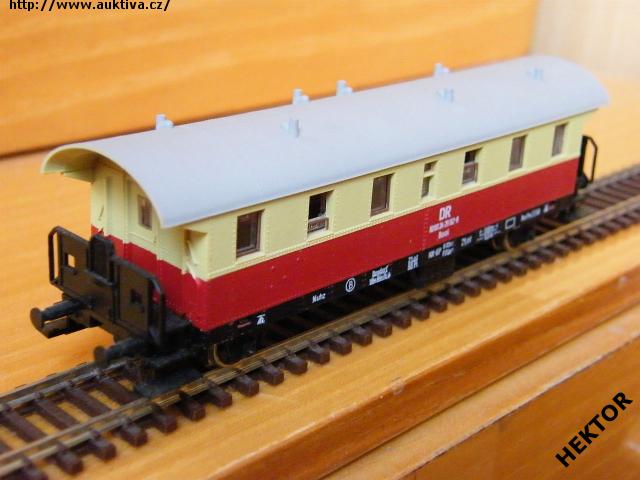 RARITA!!! Sběratelský model 2osého osobního vozu s otevřenými nástupními plošinami typu Baai (Bi - 30), DR, 2. třída, epocha IV, nová karosérie stříkaná v úrovni oken žlutokrémovou a pod okny tmavou červenou a rám barvený černou, logo DR tištěné bílou na tmavém červeném podkladu, BEZ ČÍSLA TŘÍDY, číslo vozu 50 50 24 - 26 152 - 9 tištěno bílou na tmavém červeném podkladu, popisy tištěny bílou na tmavém červeném podkladu a na černém rámu, bez směrové cedule, střecha je součástí karosérie stříkaná světlejší šedou, rámy oken nahoře hranaté, v oknech plochý plast, propracované umělohmotné zábradlí na plošině černé, spodek vozu umělohmotný černý zaklapávací s naznačenou příhradovou konstrukcí s dynamem a 2 rourami, brzdová soustava součástí spodku vozu. Výrobcem BTTB nebo Zeuke v 90. letech, kat. č. 13215 (jako 13211). Výměnná spřáhla a kovová dvojkolí. Po zakoupení byl model odložen do vitríny a neježděn, je dlouho neježděn. Bez originální krabičky.