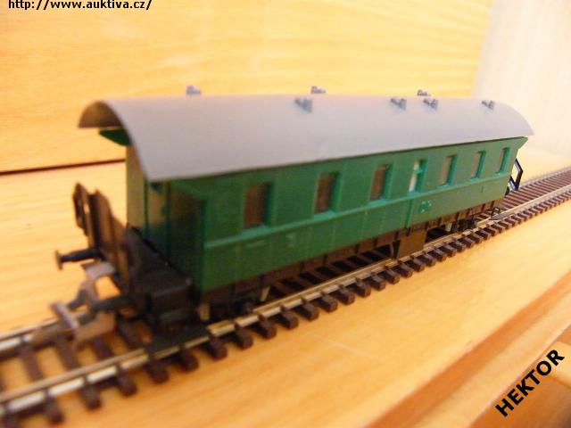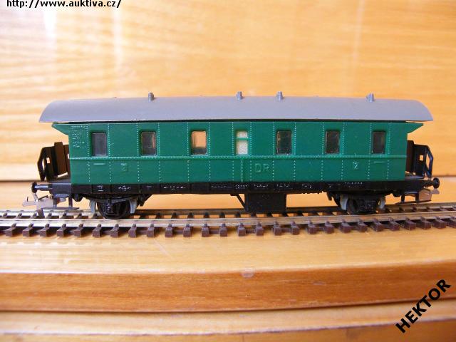 RARITA!!! Sběratelský model 2osého osobního vozu s otevřenými nástupními plošinami typu Bi - 30, DR, 2. třída, epocha III, karosérie barvená ve hmotě brčálovou zelenou a rám barvený černou, logo DR lisováno neobtaženo, číslo vozu a popisy lisované nahoře vlevo v úrovni oken, bez směrové cedule, střecha je samostatný výlisek barvený ve hmotě světlejší šedou, rámy oken nahoře zakulacené, v oknech plochý plast, hrubé kovové zábradlí na plošině černé, spodek vozu umělohmotný černý zaklapávací, brzdová soustava vkládaná šedá. Výrobcem Zeuke na začátkem 60. let, kat. č. 04/71. Průběžné spřáhlo Zeuke stříbrné a umělohmotná dvojkolí. Po zakoupení byl model odložen do vitríny a pouze občas ježděn, je dlouho neježděn. Bez originální krabičky.