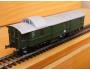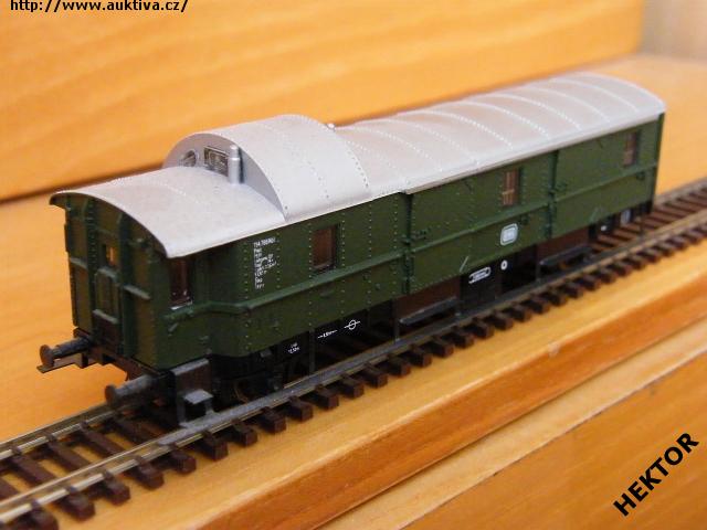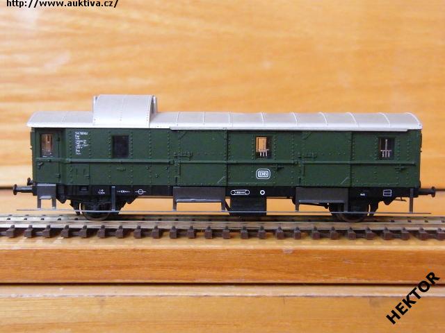 RARITA!!! Sběratelský model 2osého služebního vozu s jednou zavřenou nástupní plošinou typu Pwg - 30, DB, epocha III, karosérie stříkaná tmavší zelenou a rám barvený černou, logo DB s rámečkem tištěné bílou uprostřed pod okny na tmavším zeleném podkladu, číslo vozu 114 788 Kol a popisy tištěny bílou vlevo v úrovni oken na tmavším zeleném podkladu a na černém rámu, bez směrové cedule, střecha se zasklenou nástavbou je součástí karosérie stříkaná STŘÍBRNOU, kovové černé lávky po celé délce vozu, rámy oken nahoře hranaté, v oknech propracovaný plast, okna ve vstupních dveřích zasklená, spodek vozu umělohmotný černý s naznačenou příhradovou konstrukcí s otvory pro doplňky zaklapávací osazený rourou a dynamem, brzdová soustava součástí spodku vozu. Výrobcem Tillig začátkem 90. let, kat. č. 13416. Výměnná spřáhla typu BTTB černá a kovová dvojkolí. Po zakoupení byl model odložen do vitríny a neježděn, je dlouho neježděn. V náhradní krabičce.