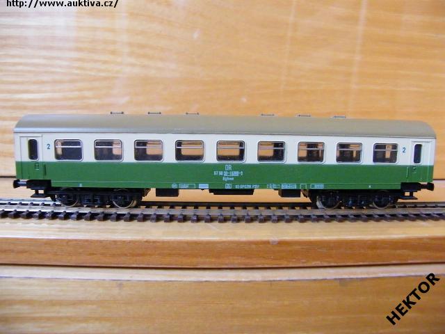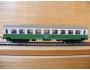 RARITA!!! Sběratelský model 4osého osobního vozu typu REKO provedení Bghwe, DR, 2 třída, epocha IV, karosérie stříkaná v úrovni oken krémovou a pod okny zelenou i na rámu, čela celá stříkaná zelenou, logo DR tištěné bílou uprostřed pod okny na zeleném podkladu, čísla třídy tištěna černou u dveří na krémovém podkladu, číslo vozu 57 50 28 - 15 206 - 2 a popisy tištěny bílou na zeleném podkladu i na rámu, bez směrové cedule, střecha hladká s ventilacemi stříkaná HNĚDOU, rámy oken v rozích kulaté, v oknech umělohmotný propracovaný výlisek se zvýrazněnou horní vyklápěcí částí stříbrnou, spodek vozu umělohmotný černý zaklapávací, 2osé podvozky umělohmotné černé, brzdová soustava součástí podvozku. Výrobcem BTTB koncem 80. let, kat. č. 13621. Výměnná spřáhla typu BTTB černá a kovová dvojkolí pro odběr proudu pro osvětlení vozu. Po zakoupení byl model odložen do vitríny a neježděn, je dlouho neježděn. Bez originální krabičky.