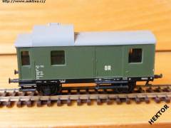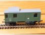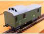 RARITA!!! Sběratelský model 2osého služebního vozu s jednou nástupní plošinou typu Pwg, DR, epocha III, karosérie stříkaná zelenou a rám černou, logo DR tištěno bílou !!!NA VELKÝCH DVEŘÍCH!!! na zeleném podkladu, číslo vozu 743 - 703 a popisy tištěny bílou vlevo pod okny na zeleném podkladu a na černém rámu, bez směrové cedule, střecha s nezasklenou nástavbou je součástí karosérie stříkaná světlejší šedou - anténka chybí, rámy oken nahoře kulatý, v oknech plochý plast s naznačenými černými mřížemi, okna ve vstupních dveřích zasklená, spodek vozu černý lepený, brzdová soustava součástí spodku vozu. Výrobcem Zeuke v 60. letech, kat. č. 545/766. Výměnná spřáhla (dodám) a umělohmotná dvojkolí. Po zakoupení byl model odložen do vitríny a pouze občas ježděn, je dlouho neježděn. Bez originální krabičky.