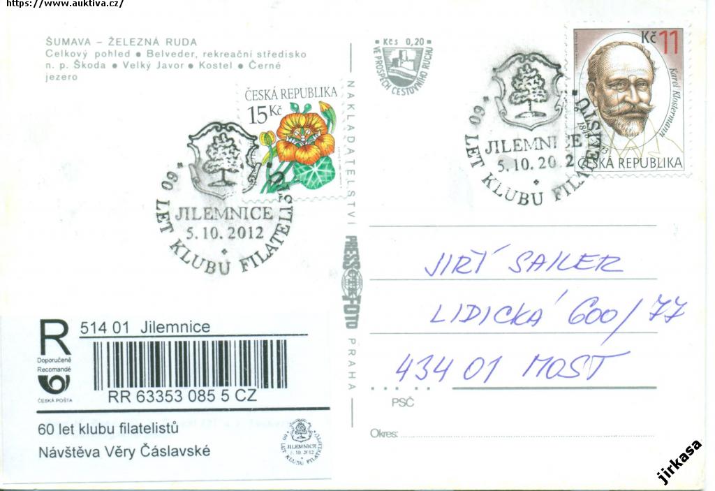 Razítko R nálepka Jilemnice KF Čáslavská pohled Železná Ruda