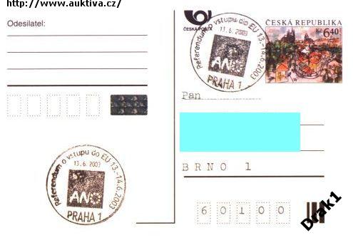 Referendum o vstupu do EU Příležitostné razítko Praha 1 2003