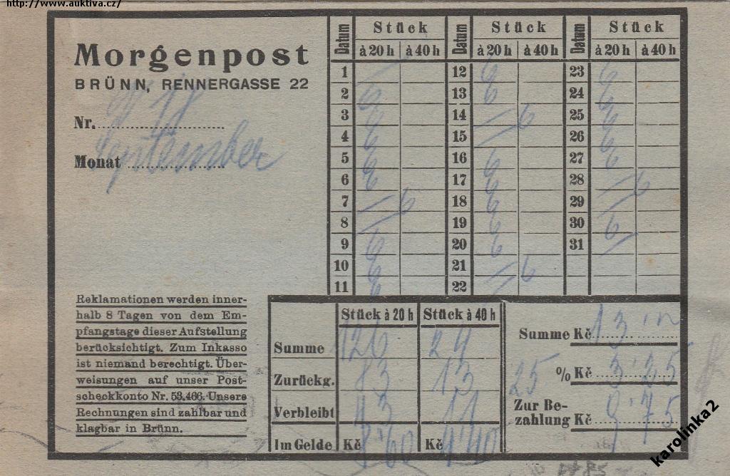 REKLAMA MORGENPOST BRNO /rok1930/*c5871