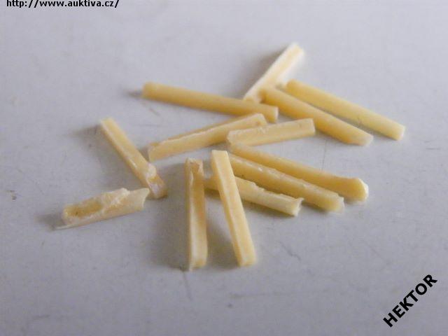 Rezinové odlitky stojek zábradlí patrových vozů na přepravu aut. Stojky jsou velikosti 0,5 x 0,5 mm různé délky – opracovaný a neopracovaný – 13 kusů – TT. Výrobcem TT club Plzeň, který dále ve výrobě nepokračoval. Nový nepoužitý. Cena je za celý balíček - na obrázku.