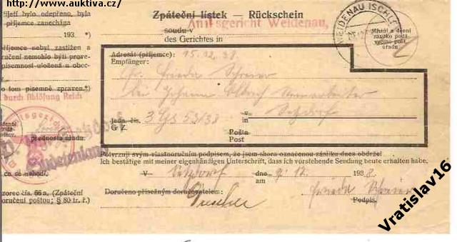 tzv.ZPÁTEČNÍ LÍSTEK Z LET 1938-45 ------STAV VIZ NÁHLED, ZACHOVALÁ