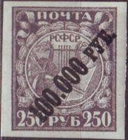 Rusko 1922 Osvobozená práce, přetisk 100.000 rub., Michel č.190x **